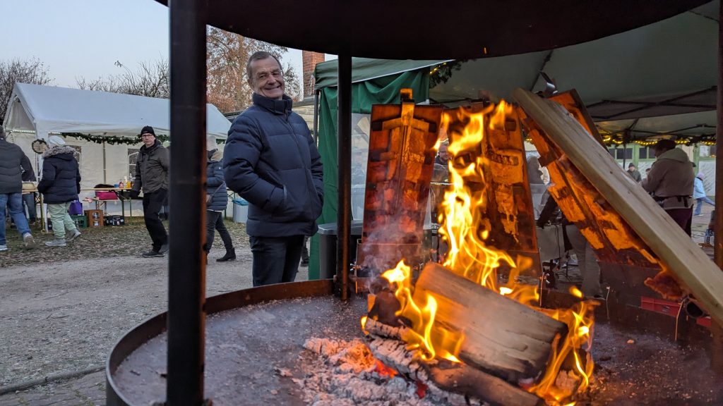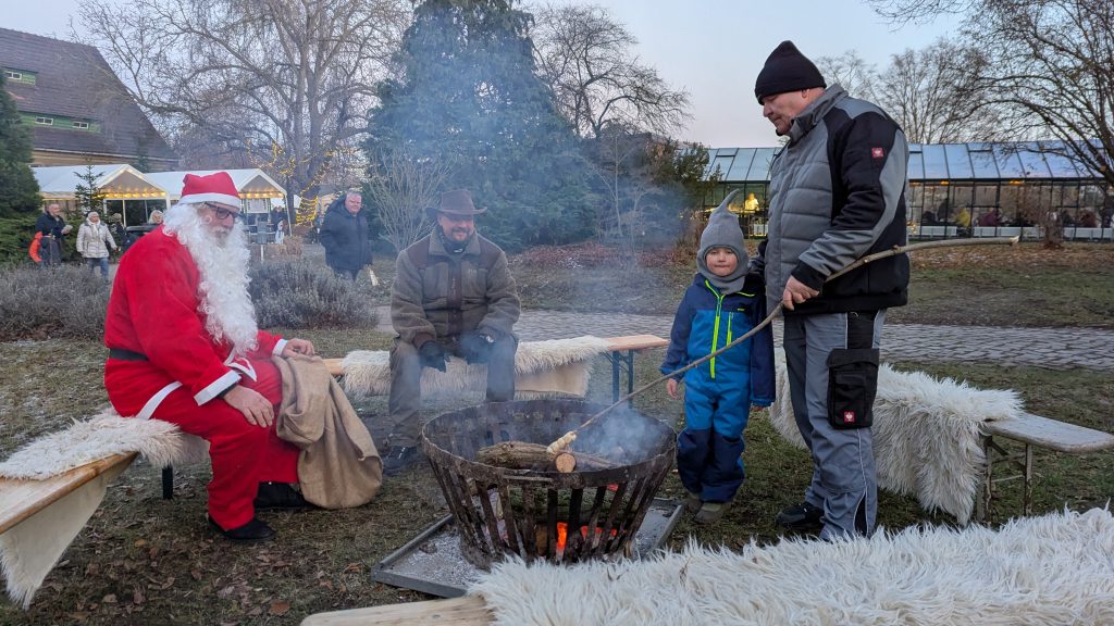 Ein weiterer Höhepunkt war das Stockbrot am Lagerfeuer mit Sven Hohle. Die Kinder standen geduldig am Feuer, drehten ihren Teig über der Flamme und genossen das Knistern des Holzes – ein Moment, der den Wintermarkt jedes Jahr zu etwas Besonderem macht. Große Augen gab es auch, als der Weihnachtsmann früh am Abend vorbeischaute und die Kinder begrüßte.